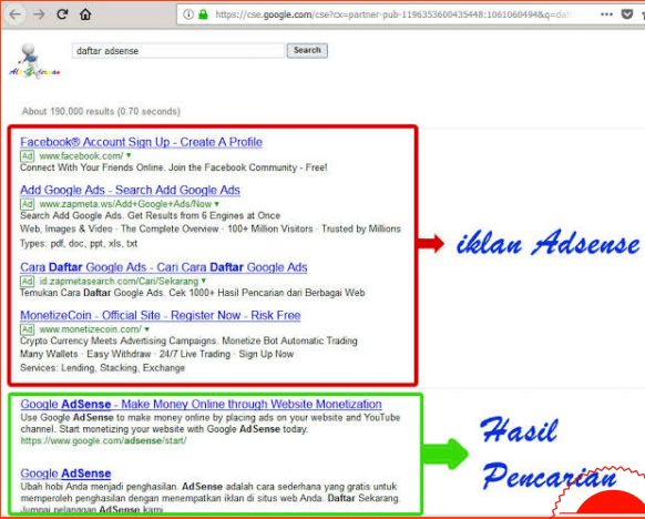 dari produk adsense dimana iklaniklannya akan tampil di dalam hasil